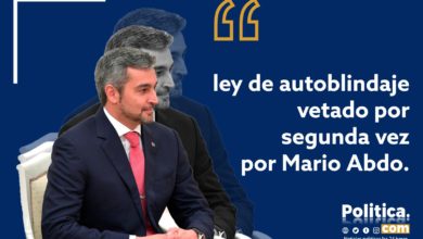 El presidente de la República, Mario Abdo Benítez, vetó totalmente el proyecto de ley conocido como autoblindaje legislativo. Es la…
